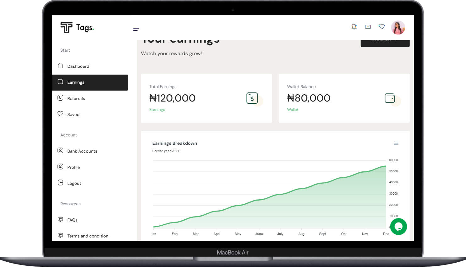 Watch your earnings grow as you interact with these personalized ads. Withdraw your rewards once you reach the minimum threshold. Start earning with TAGS today!